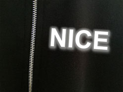 Mikroskopisch kleine. halbseitig verspiegelte Glaskügelchen reflektieren das Licht zu seiner Quelle zurück. Ein Druckverfahren, das hauptsächlich im Sicherheitsbereich bei Arbeitsbekleidung zum Einsatz kommt.